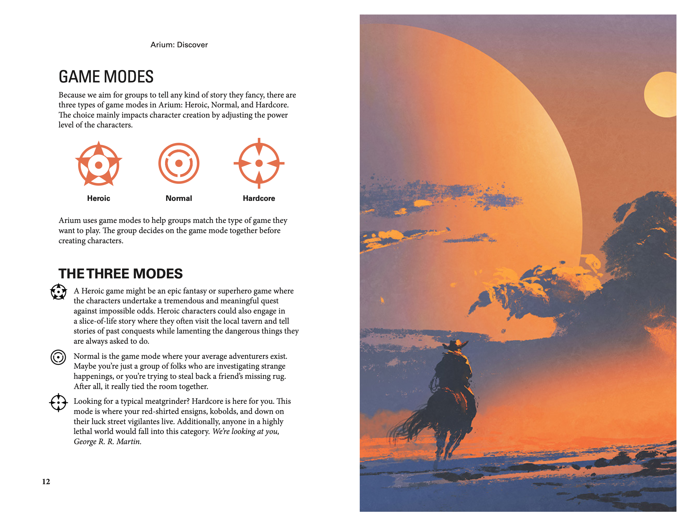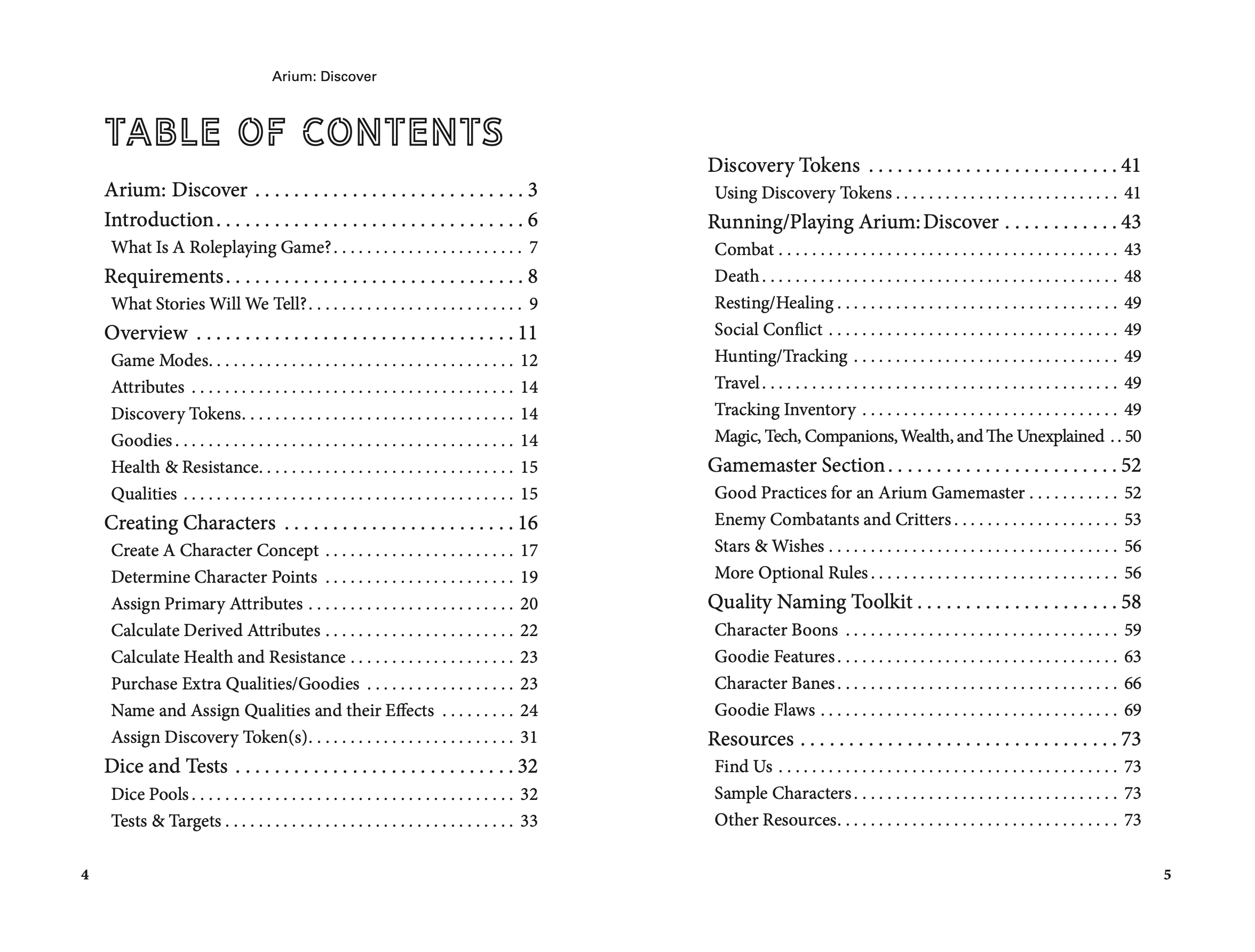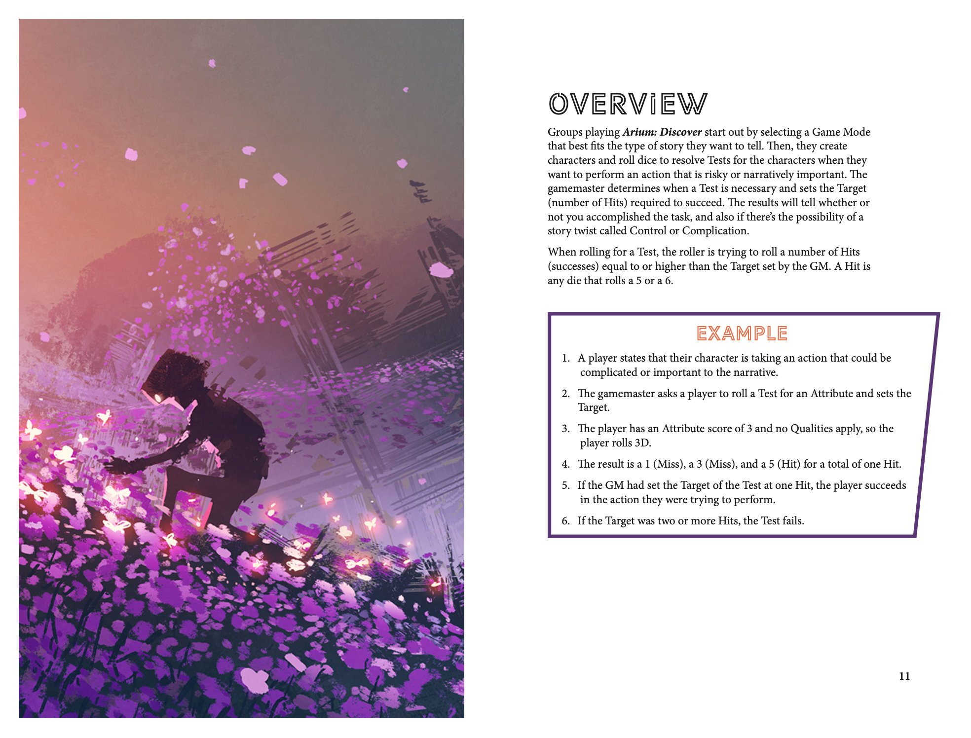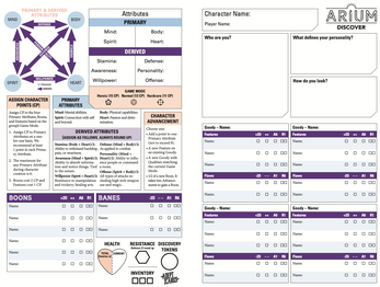 Arium: Discover is a streamlined tabletop roleplaying game flexible enough to work with any world. Take your favorite TV series, your homebrew setting, or a movie/novel and quickly adapt to run it with Discover. Even better, build a world together using Arium: Create as a basis for your game. Arium: Discover builds on your universe by letting players take ownership of characters, items, and locations.
